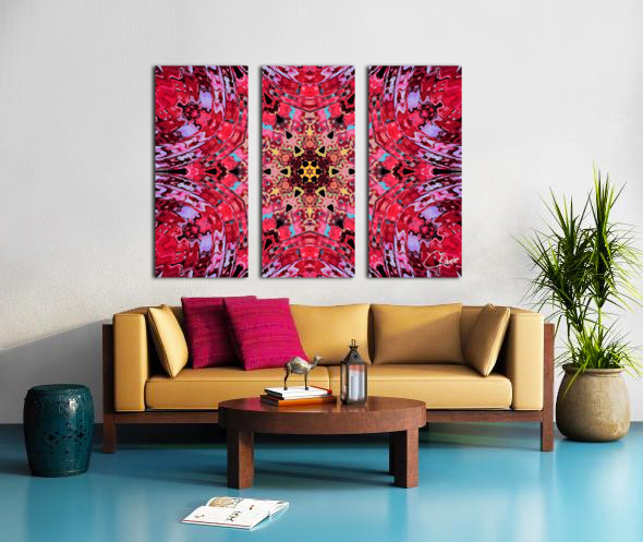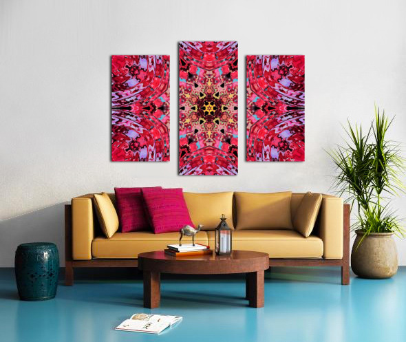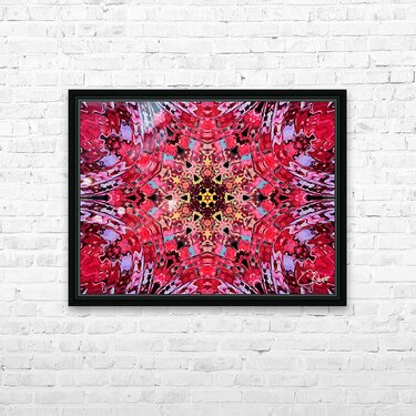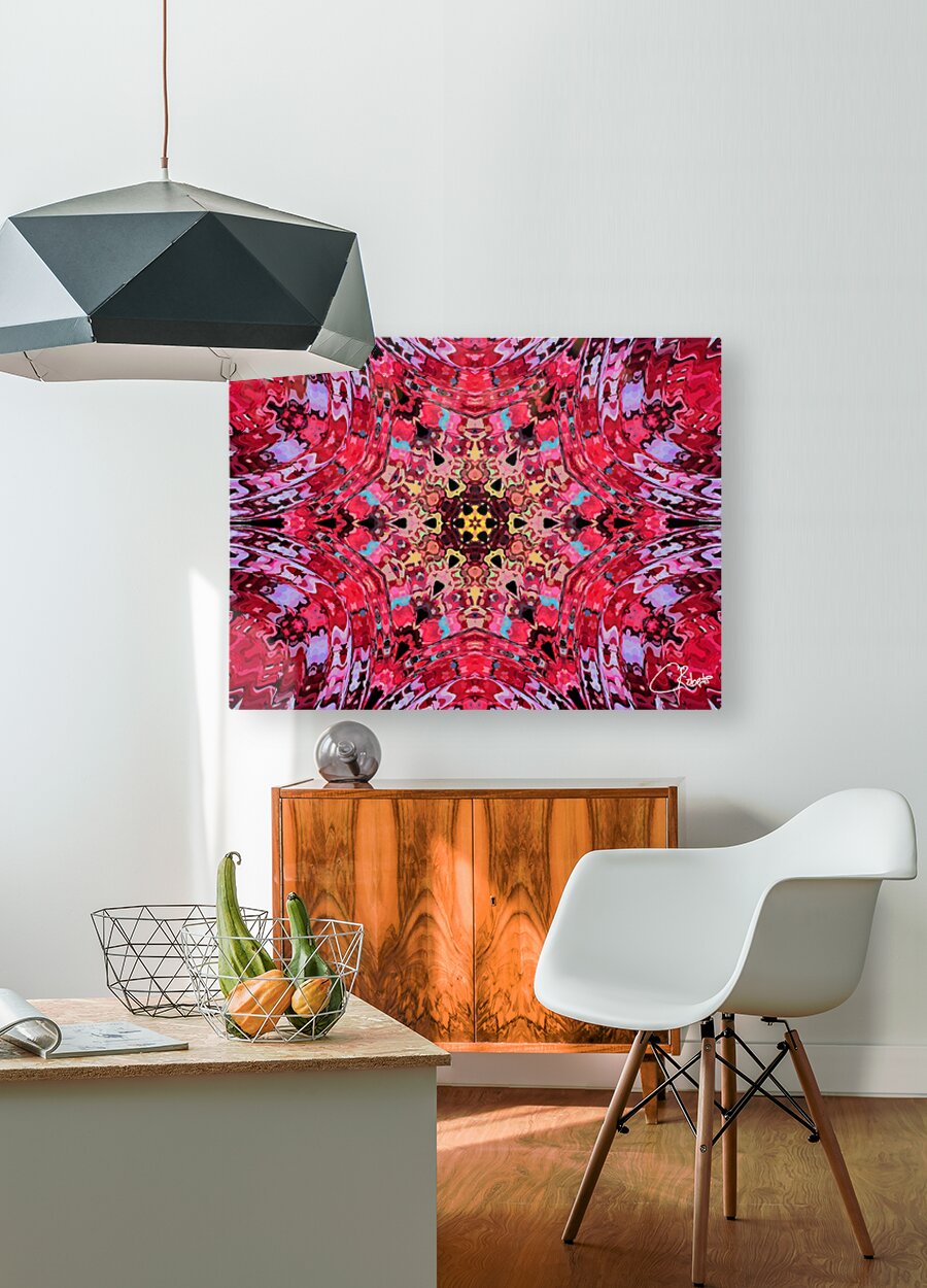 Originally a hand painted acrylic laterally digitally manipulated into an abstract kaleidoscope of hippie, trippy, cool boho reds and pinks pattern.