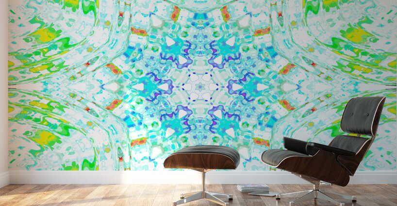Originally a hand painted abstract acrylic composition laterally digitally manipulated into a modern abstract kaleidoscope design.