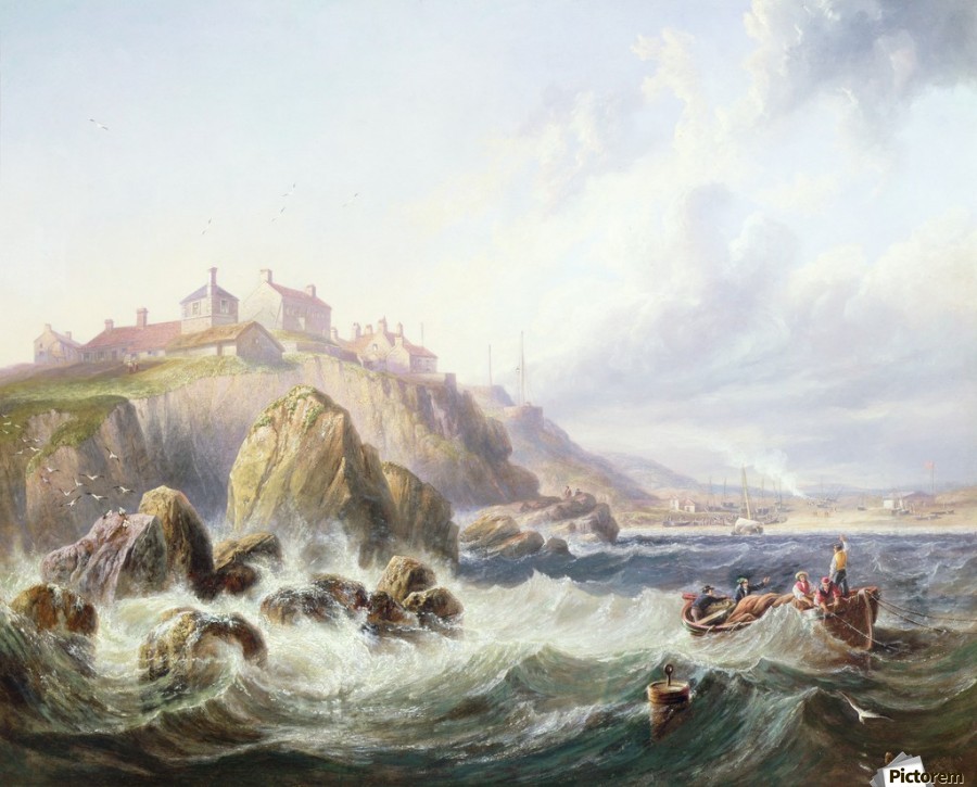 Carmichael was born at the Ouseburn, in Newcastle upon Tyne, Northumberland, on 9 June 1800, the son of William Carmichael, a ships carpenter. He went to sea at an early age, and spent three years on board a vessel sailing between ports in Spain and Portugal. On his return, he was apprenticed to a shipbuilding firm. After completing his apprenticeship, he devoted all his spare time to art, and eventually gave up the carpentry business, setting himself up as a drawing-master and miniature painter. His first historical painting to attract public notice was the Fight Between the Shannon and Chesapeake, which sold for 13 guineas (£13.65). He then painted The Bombardment of Algiers for Trinity House, Newcastle, for which he received 40 guineas; it is still at Trinity House, along with The Heroic Exploits of Admiral Lord Collingwood in HMS "Excellent" at the Battle of Cape St. Vincent, painted in collaboration with George Balmer. Another important early commission was for a View of Newcastle for which the city corporation paid him 100 guineas. His name first appears as an exhibitor in 1838, when he contributed an oil painting, Shipping in the Bay of Naples, to the Society of British Artists. He showed both oil paintings and watercolours at the Royal Academy, his contributions including The Conqueror towing the Africa off the Shoals of Trafalgar (1841) and The Arrival of the Royal Squadron (1843).