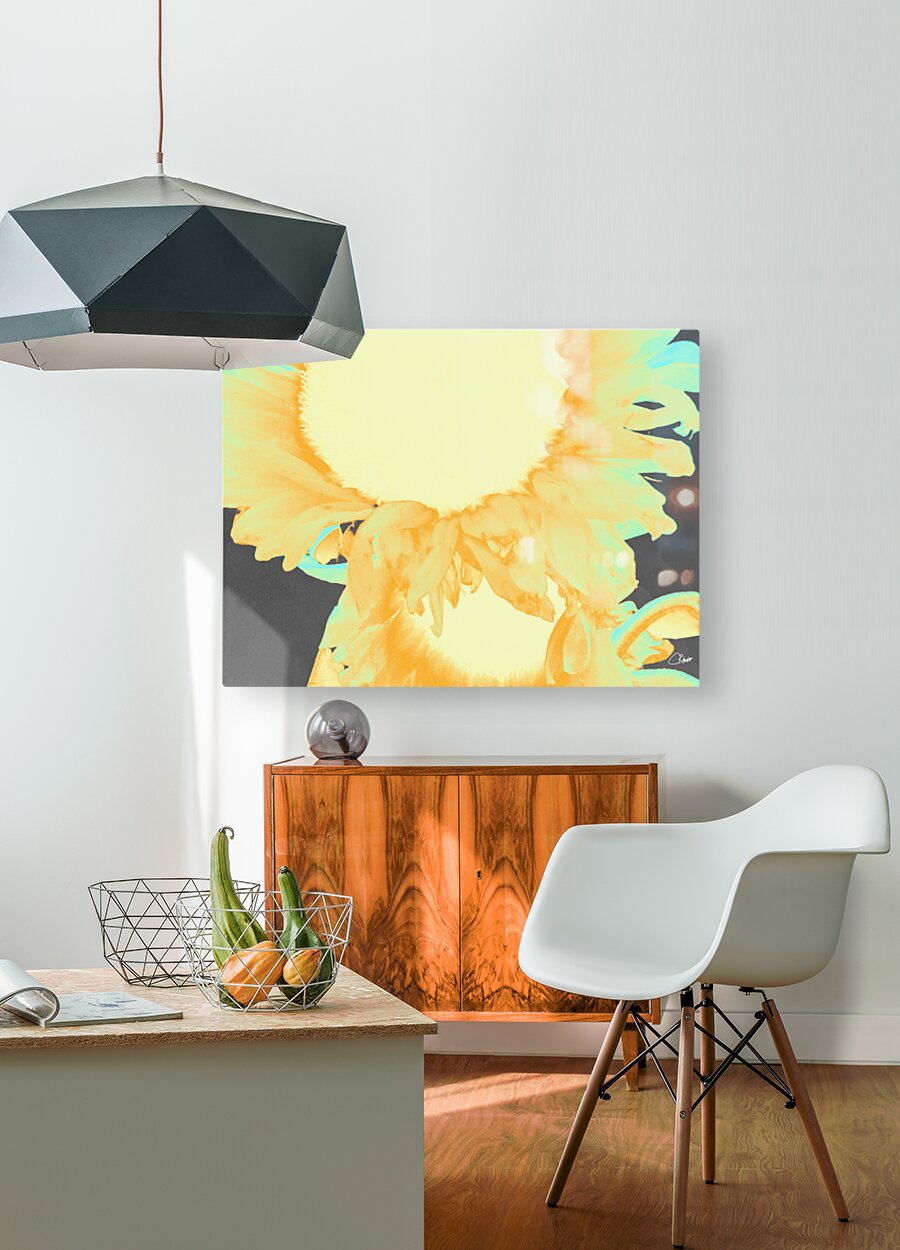 Fusing two designs into one, a close up photo of Sunflowers and a hand painted abstract, laterally digitally manipulated, enabled this awesome floral ...[+]