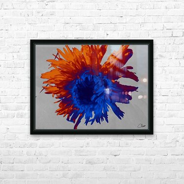 Darker Blue Neon Heatwave Chrysanthemum  Picture Frame Printing