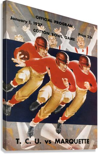 1937 COTTON BOWL PROGRAM COVER ART ROW ONE BRAND  Canvas Print