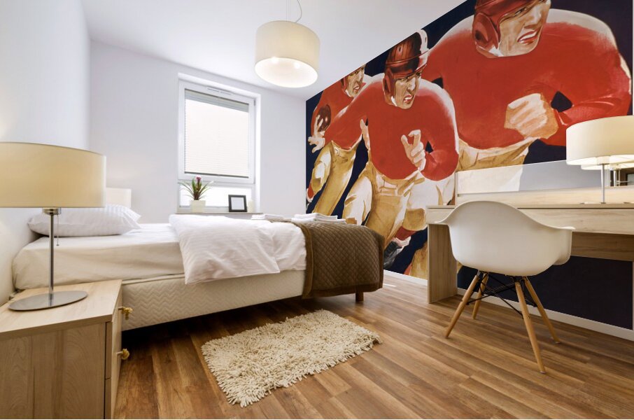 Pictorem Art Print 1947 New York Bulldogs at Pittsburgh Steelers canvas ticket art in business office at night with cityscape skyscrapers view as snow falls