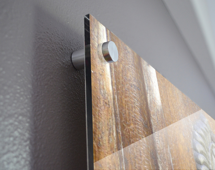 Printed to the edge - Ready to hang - provided with 4 premium polished aluminum stand off ( wall screws and mounting hardware provided )