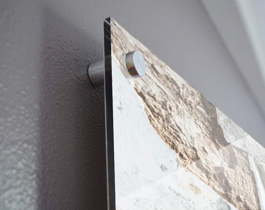 Printed to the edge - Ready to hang - provided with 4 premium polished aluminum stand off ( wall screws and mounting hardware provided )