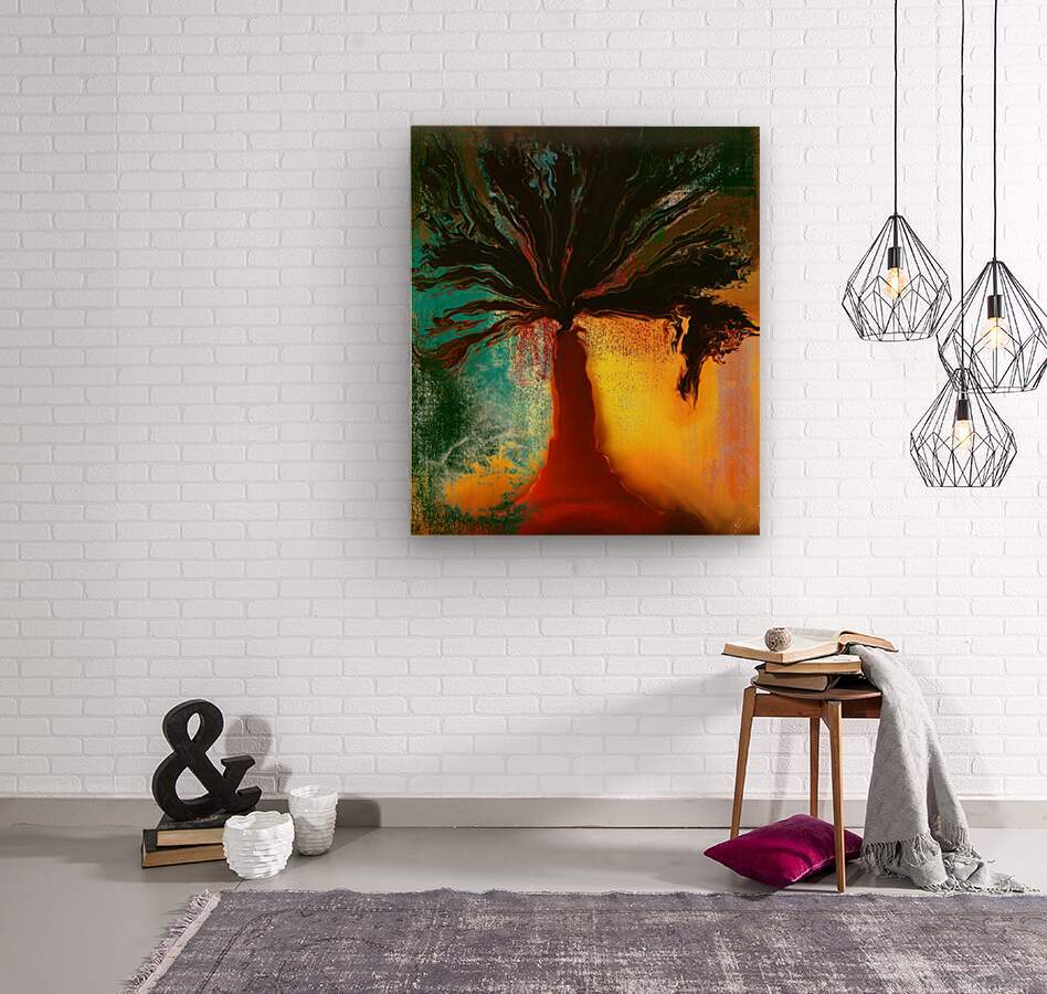 Sunset Solace and the Majestic Tree - Happy Art Print  Wood print