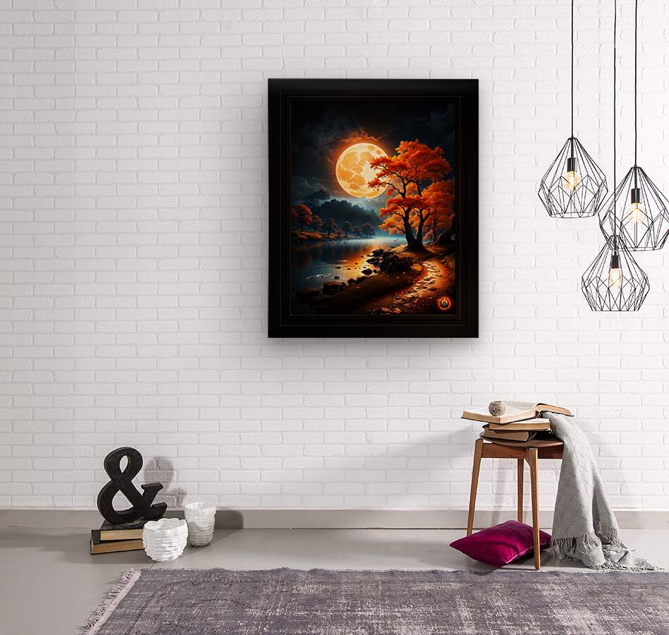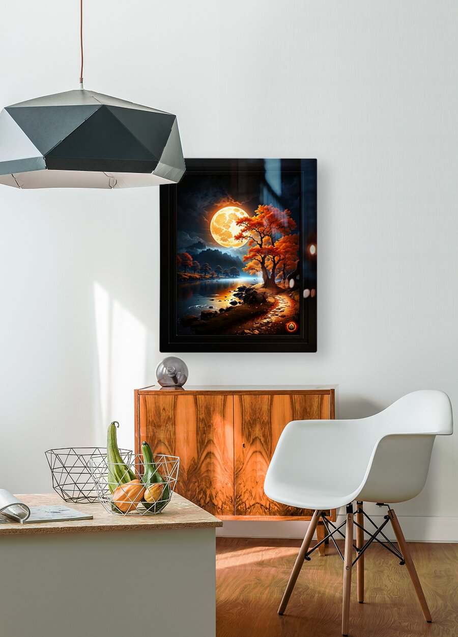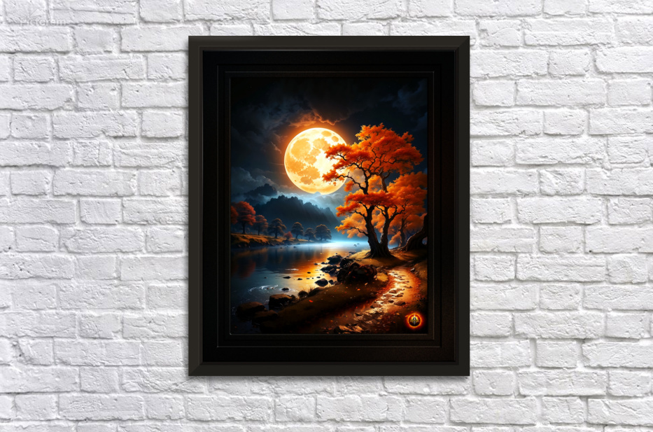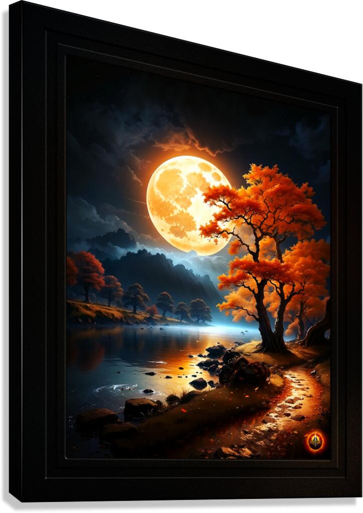 Get this artwork "The Enchanted Realm Of The Orange Moon Captivating AI Concept Art by Xzendor7" in a framed print.