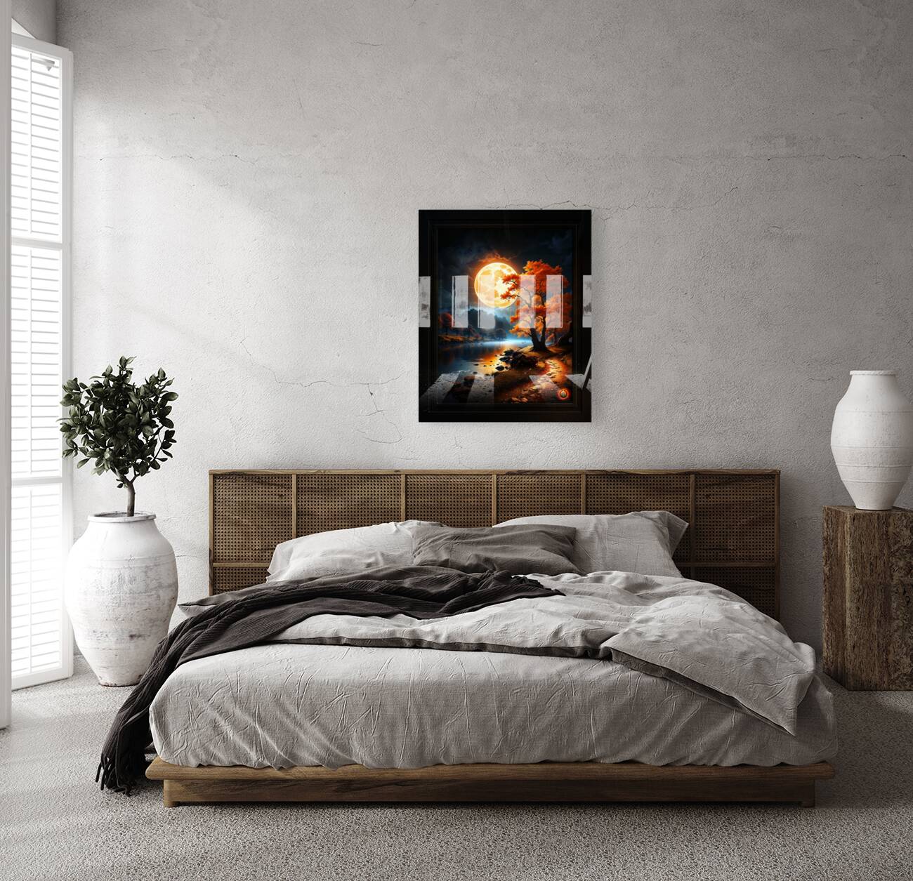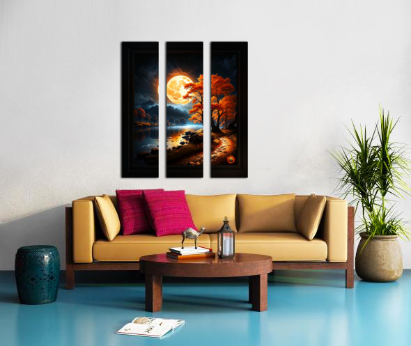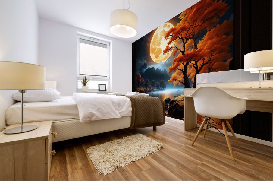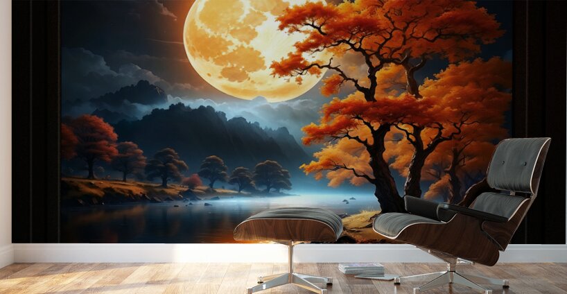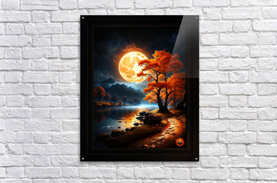 Get this artwork "The Enchanted Realm Of The Orange Moon Captivating AI Concept Art by Xzendor7" in a framed print.
