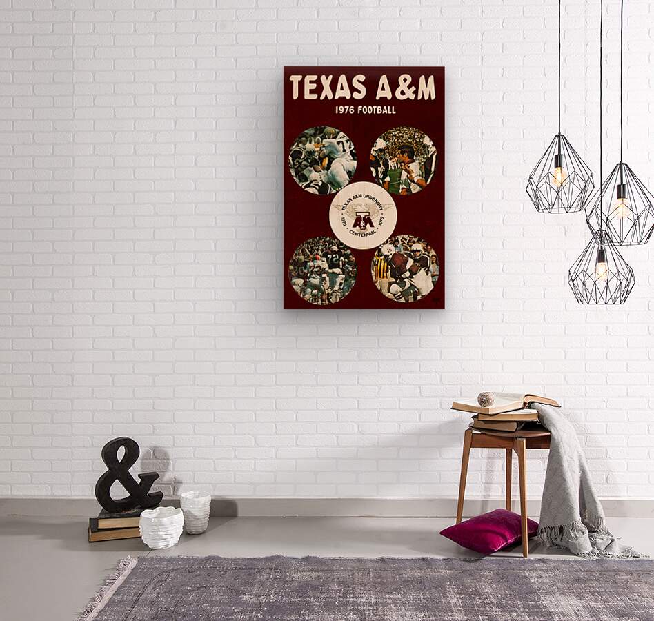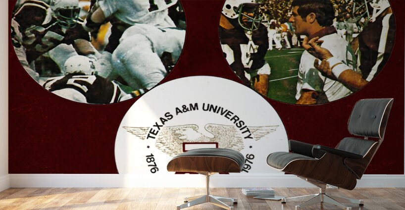 1976 Texas A&M Aggies Football Art from Row One | Derivative art © 2023 Row One Brand | Over 11,000 Collectible Sports Art Pieces and Historic College Art Prints | Created from historic '76 Texas A&M football memorabilia art and remixed for aesthetics, Row One Brand's throwback Texas A&M Aggies football art will look fantastic in your game room or office. This historic college art is not affiliated with, licensed, sponsored, authorized, or endorsed by any college, university, team, league, artist, other brand, or any licensing entity. This art was created from historic 1976 college artwork published without a copyright notice.