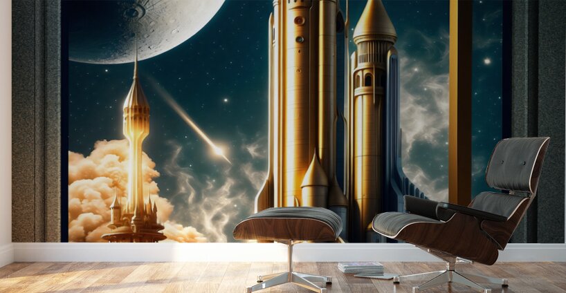 Take An Adventurous Journey To The Moon AI Concept Art by Xzendor7; while enjoying a luxurious stay at the Gold Standard Grand Hotel Ampharious.