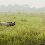 LONELY RHINOCEROS IN CHITWAN