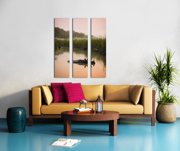 Rhinoceros bathing in Chitwan Nepal Canvas print
