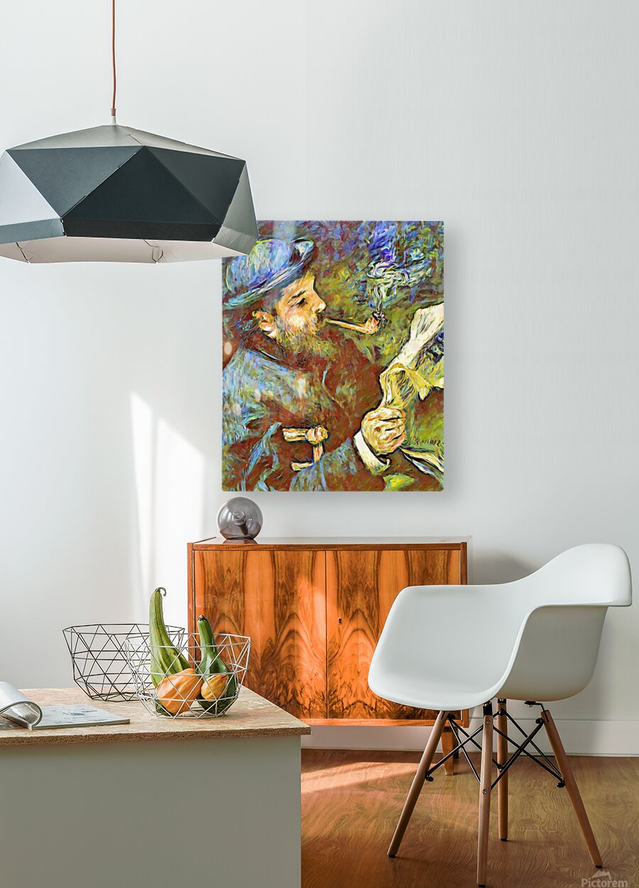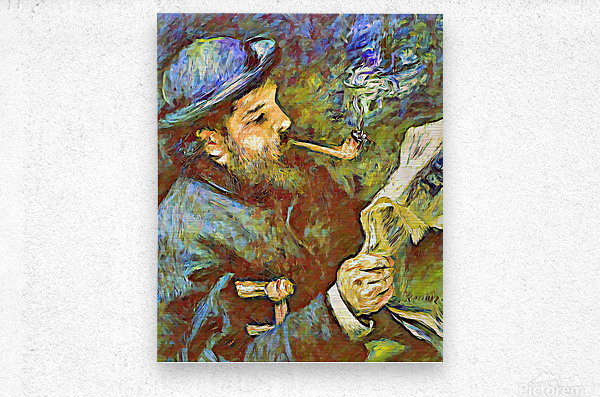 Renoir painting Claude Monet Reading imp  HD Metal print with Floating Frame on Back