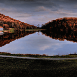 Get this artwork "Peaks of Otter Lake Panorama in Autumn" in a framed print.