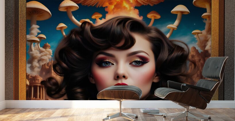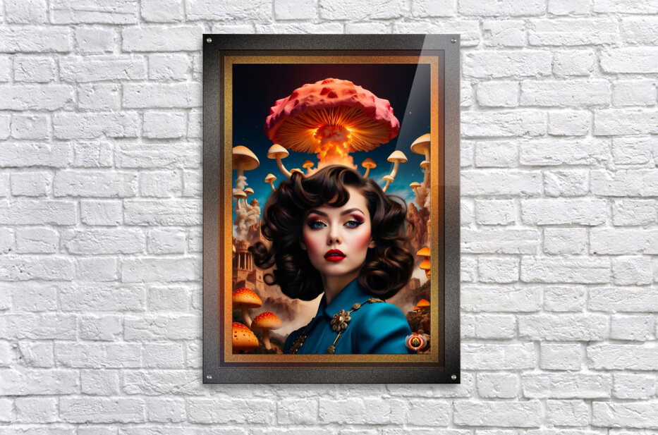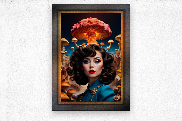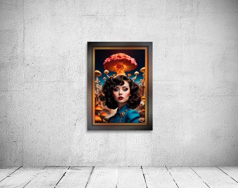 Get this artwork "Atomic Mushrooms BARBENHEIMER Retro Fusion Captivating Portrait Art AI Concept Creation by Xzendor7" in a framed print.