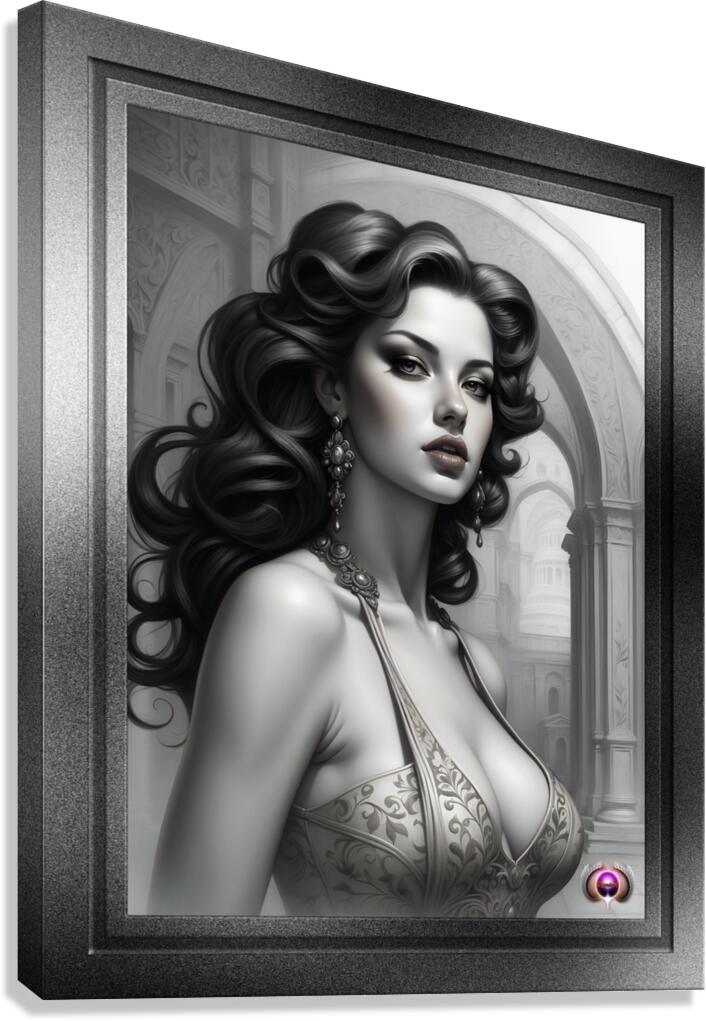 CAPTIVATING PORTRAIT OF VICTORIA PIN UP RETRO AGE POSTER ART AI CONCEPT CREATION BY XZENDOR7 XZENDOR7  Canvas Print