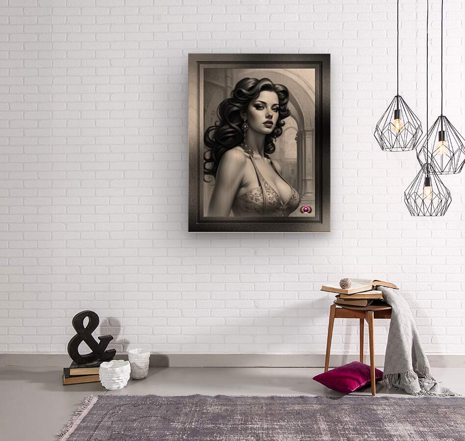 Captivating Portrait Of Victoria Pin Up Retro Age Poster Art AI Concept Creation by Xzendor7  Wood print