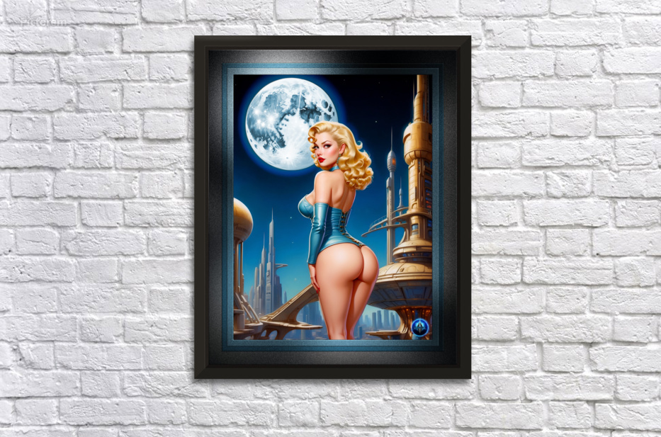 The Future Looks Golden Stunning Retro Fusion Pin Up AI Concept Art by Xzendor7 Picture Frame Printing