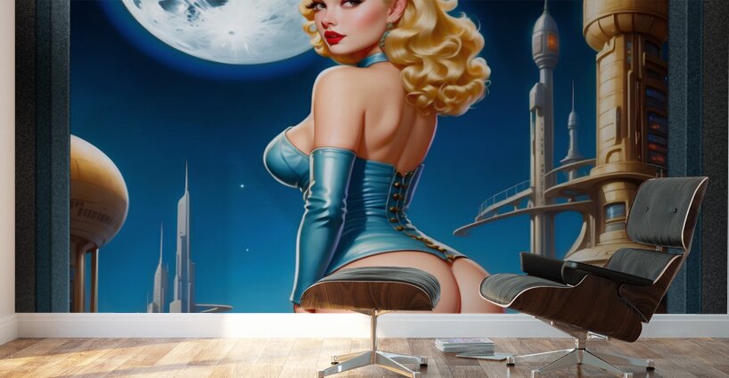 The Future Looks Golden AI Concept Art by Xzendor7; as a beautiful golden blonde pin up girl in the light of a full moon. Read The Short Story At My W...[+]