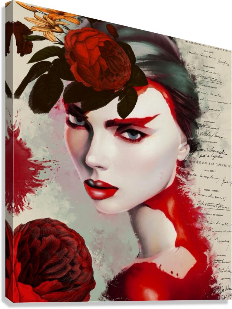 FEMME FATALE BLOOMS - VINTAGE ART PRINT CORINA IOANA  Canvas Print
