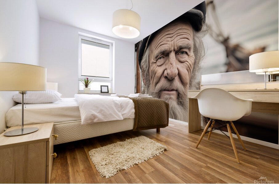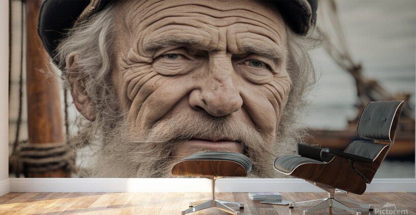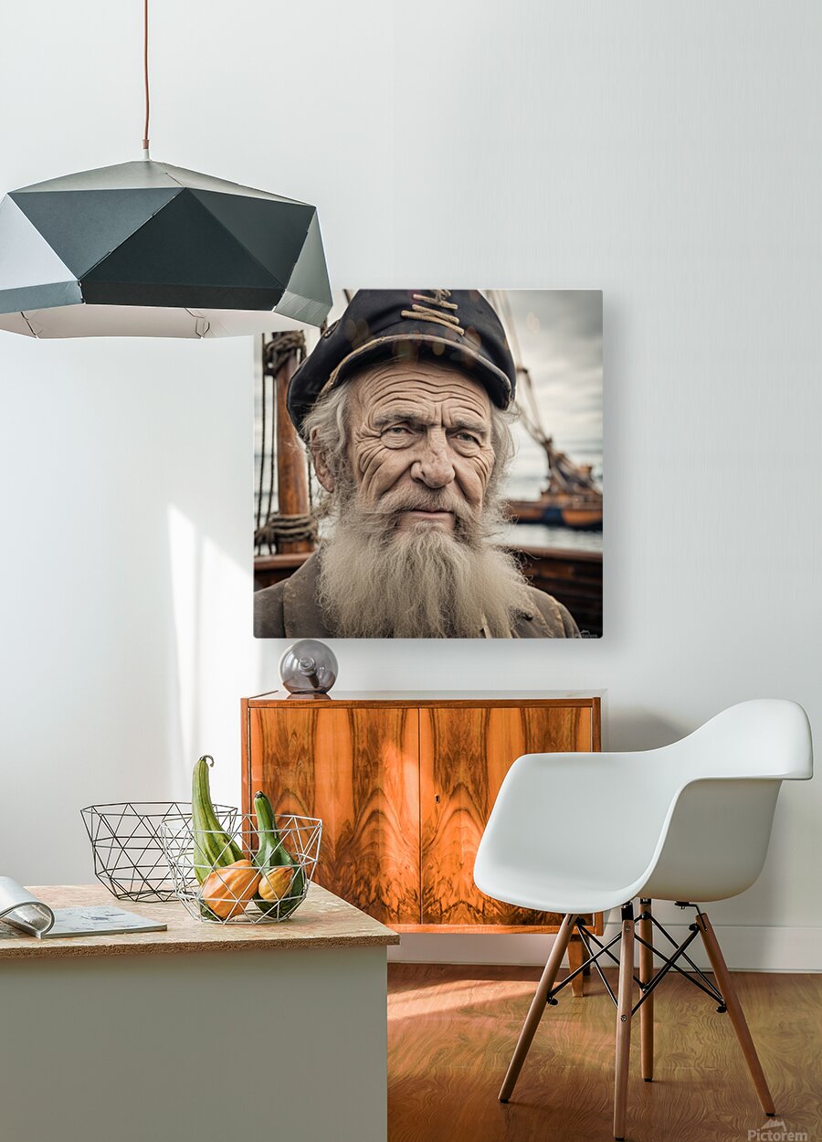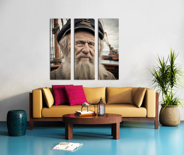 OLD SAILING SHIP CAPTAIN FACE WEATHERED WITH OLD WOODEN SAILING SHIP IN BACKGROUND  AIGALLERY  Canvas Print