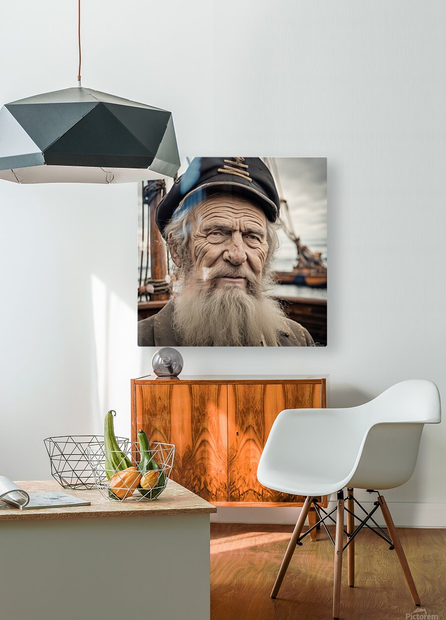 OLD SAILING SHIP CAPTAIN FACE WEATHERED WITH OLD WOODEN SAILING SHIP IN BACKGROUND  AIGALLERY  Canvas Print