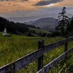 VAL DI FUNES CHURCH AT SUNSET MOUNTAIN VIEWS
