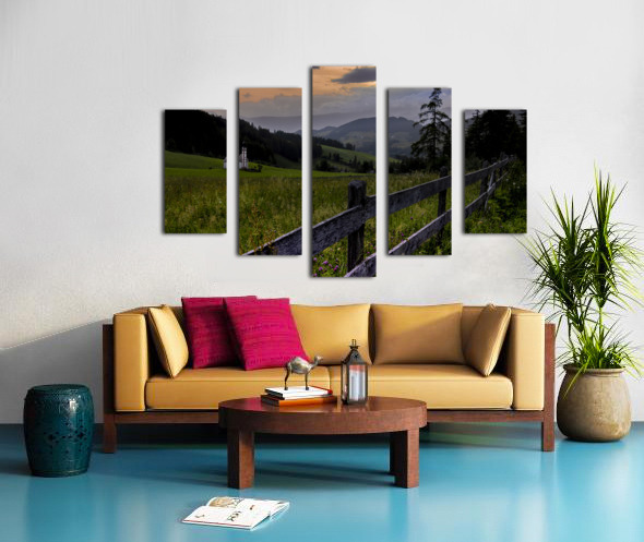 Val di Funes Church at  Sunset Mountain Views Canvas print
