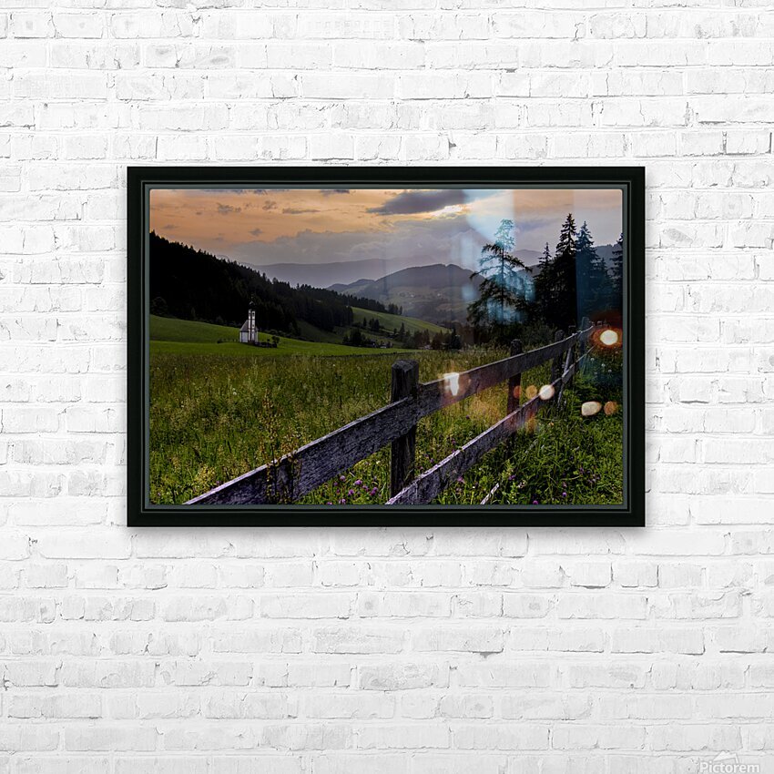 Get this artwork "Val di Funes Church at Sunset Mountain Views" in a framed print.