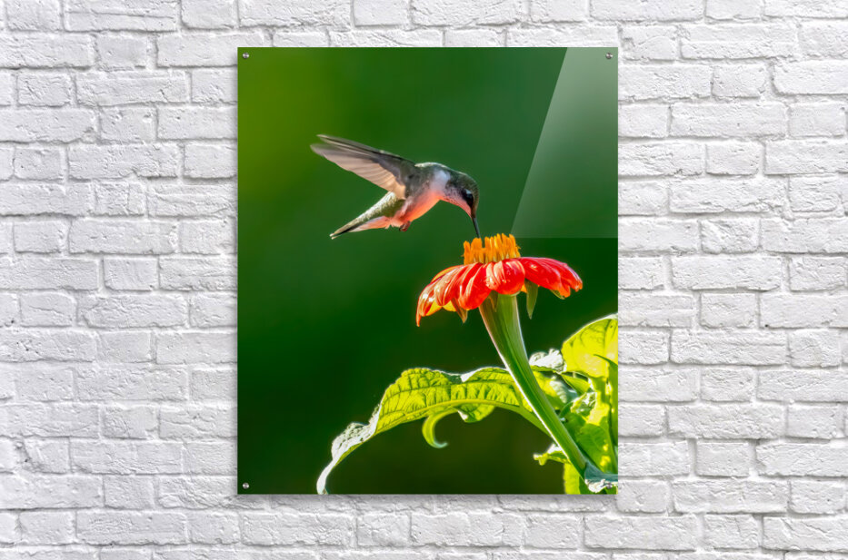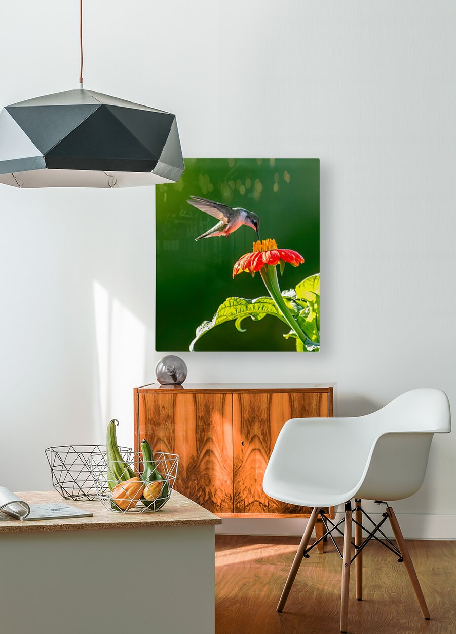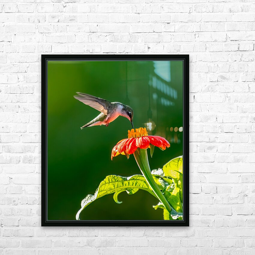 Hummingbird on sunflower  HD Metal print with Floating Frame on Back