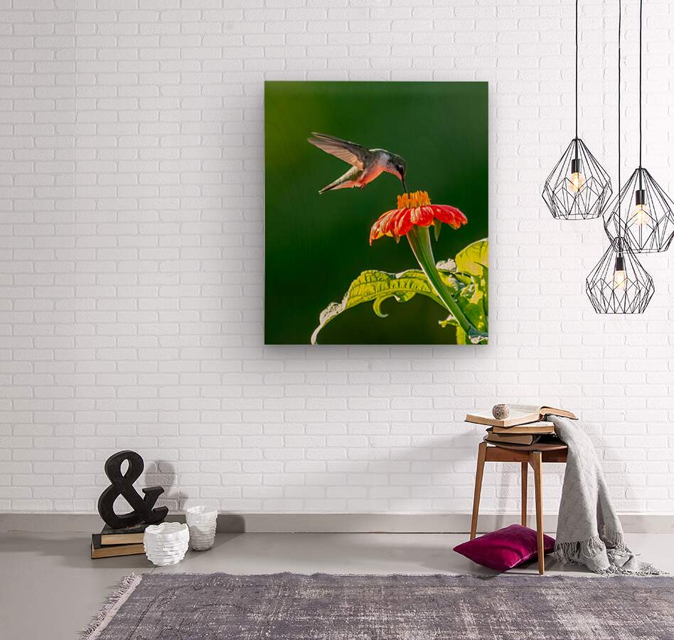 Hummingbird on sunflower  Wood print