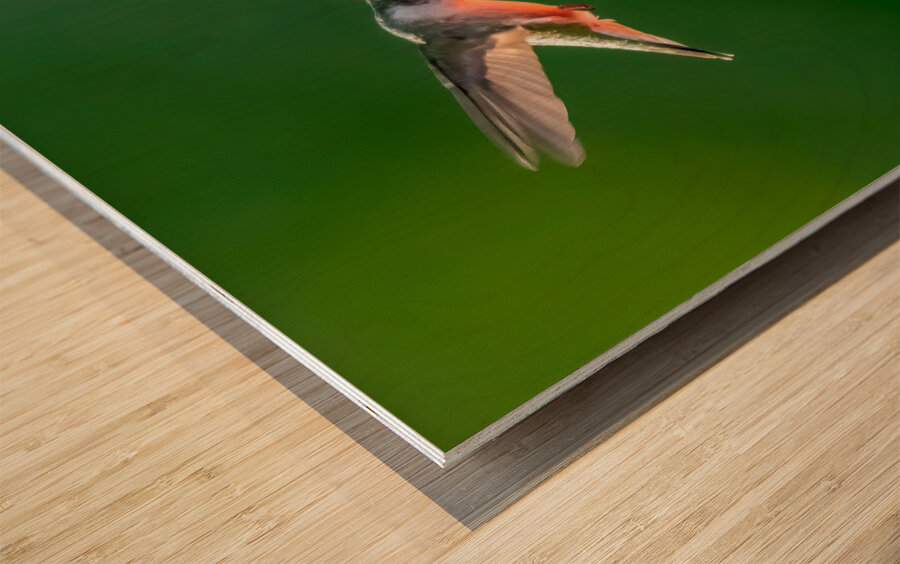 Hummingbird on sunflower Wood print
