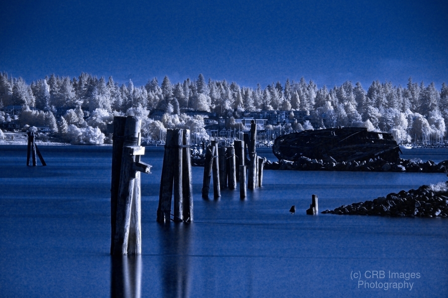 The Royston wrecks were placed into Comox Harbour years ago to create new fish habitat. This image was taken with a Hoya R72 infrared filter.