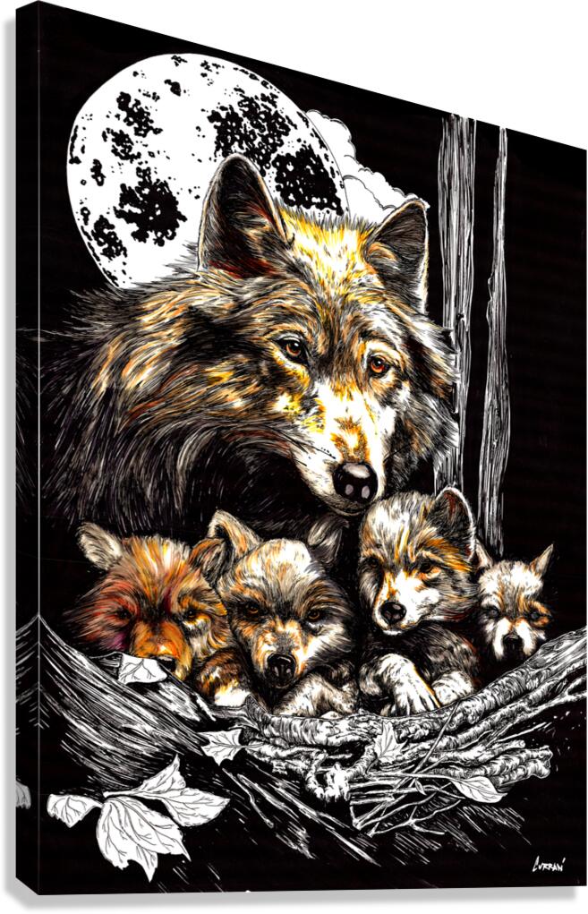 WOLF AND CUBS KRIS CURRAN  Canvas Print