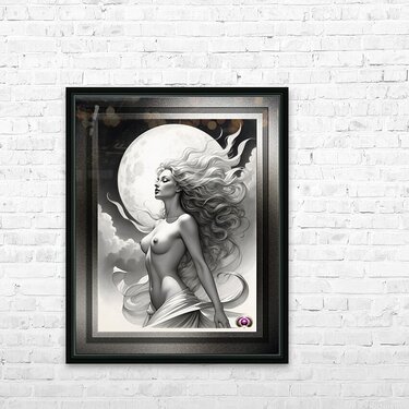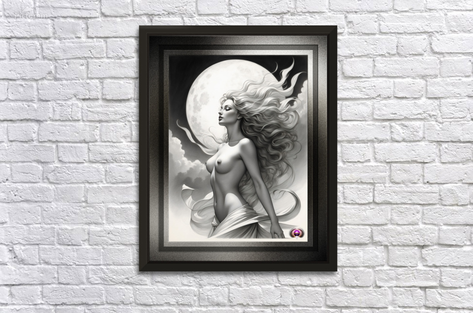 The Alluring Passion Of A Harvest Moon Captivating Portrait AI Concept Art by Xzendor7 Wall Decor Frame