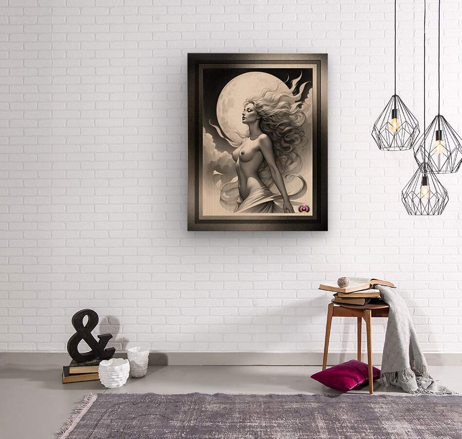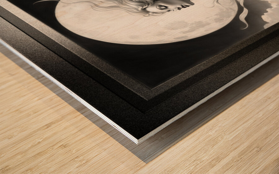 The Alluring Passion Of A Harvest Moon Captivating Portrait AI Concept Art by Xzendor7  Wood print