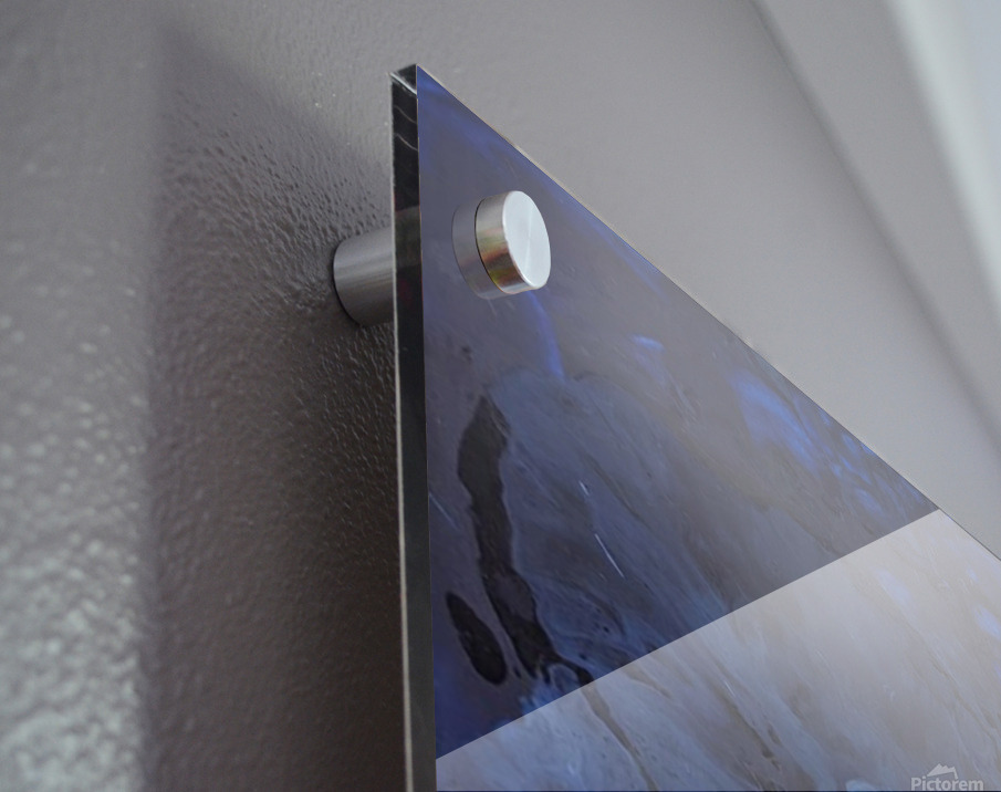 Printed to the edge - Ready to hang - provided with 4 premium polished aluminum stand off ( wall screws and mounting hardware provided )