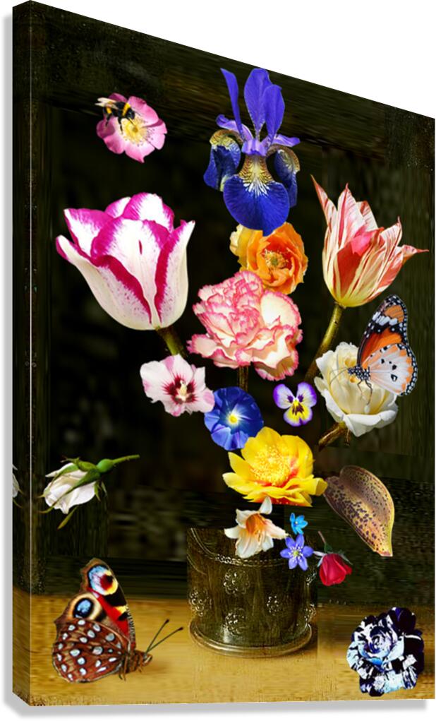 A BOUQUET OF FLOWERS IN A GLASS VASE GERRY CHAPLESKI  Canvas Print