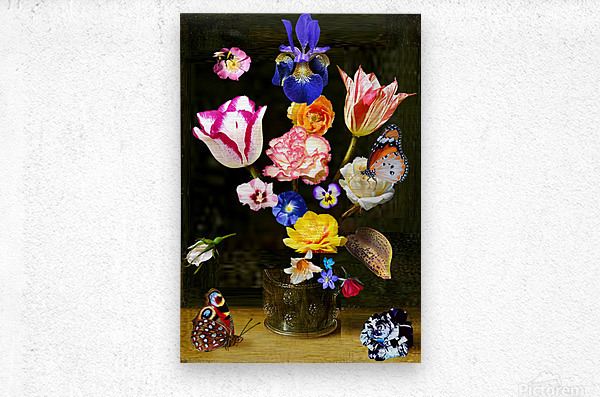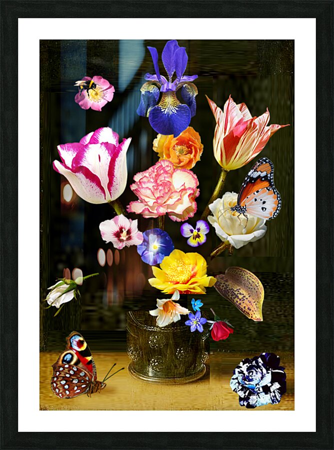 A BOUQUET OF FLOWERS IN A GLASS VASE Picture Frame Printing