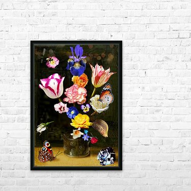 A BOUQUET OF FLOWERS IN A GLASS VASE Wall Decor Frame