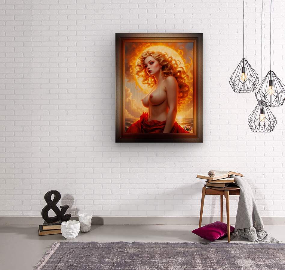 The Enchanting Flames Of Dawn Captivating Portrait AI Concept Art by Xzendor7  Wood print