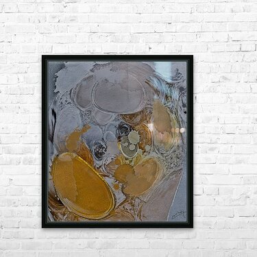 Shop "Dancing Elegance" – metallic abstract art with shimmering bubbles in silver, gold, copper, and charcoal. Limited edition prints on canvas, met...[+]