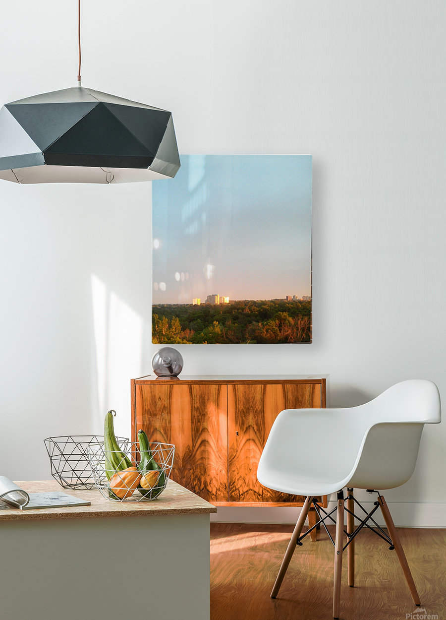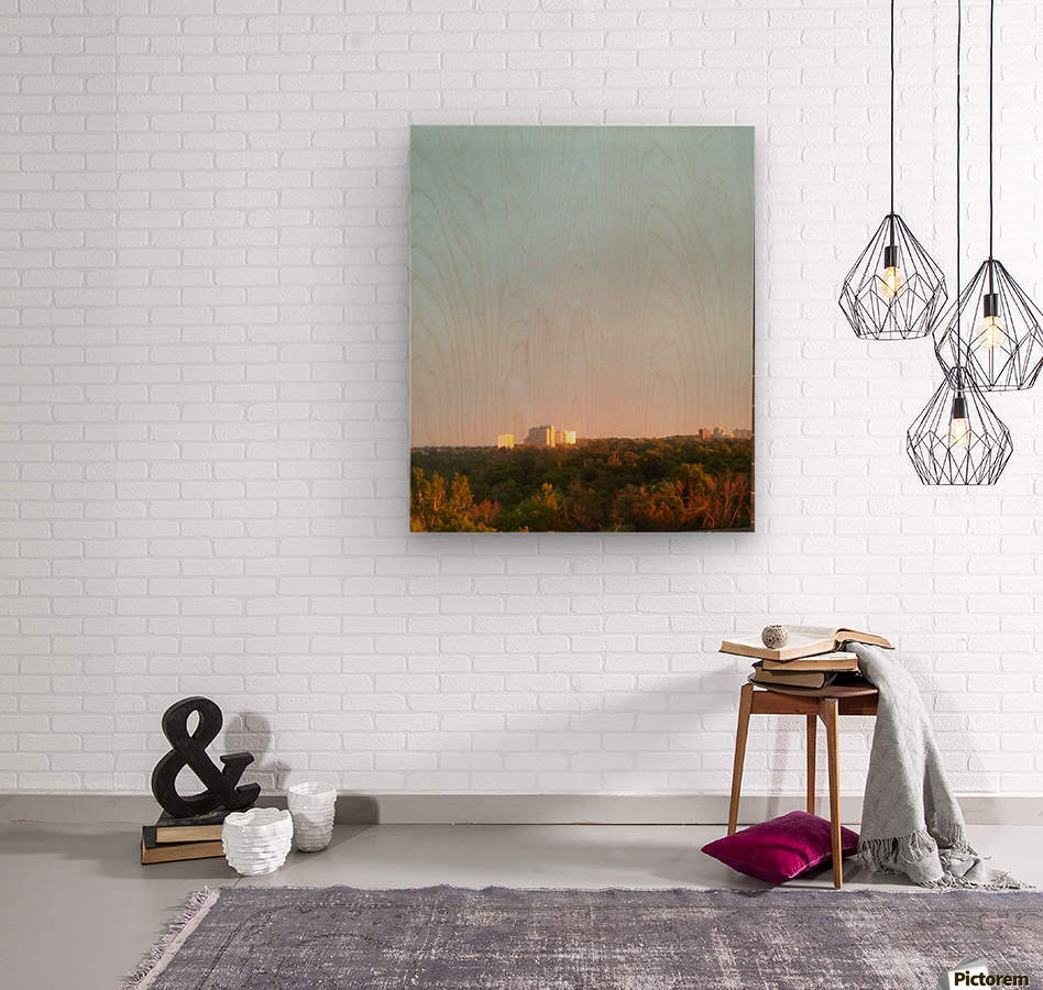 Sunset shining through the trees  Wood print