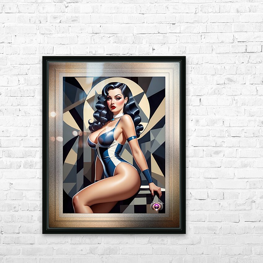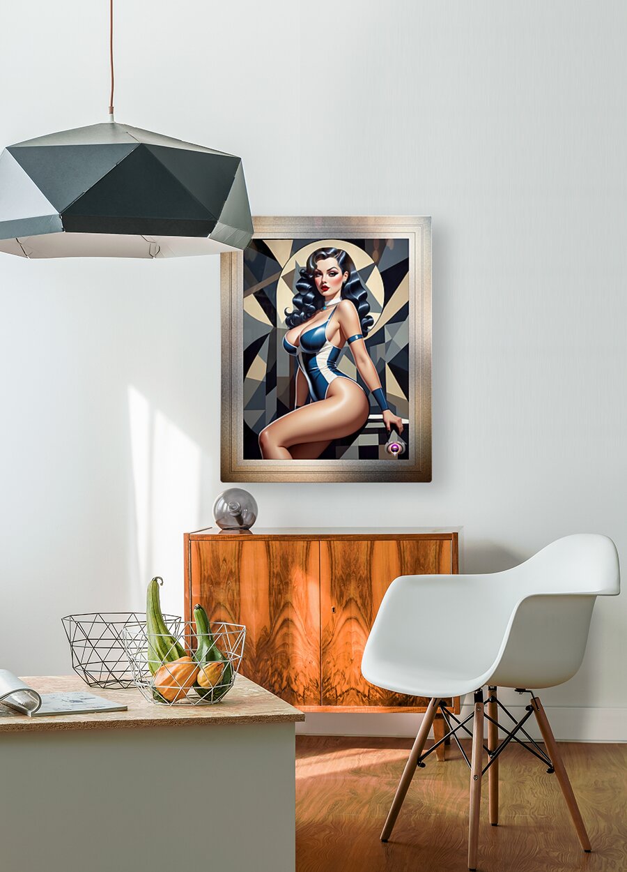 I Play All The Angles Retro Fashion Pin Up Queen Captivating Portrait AI Concept Art by Xzendor7 Picture Frame Printing