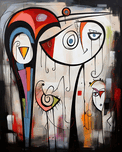 Creating abstract, original creatures in a painting is a delightful and imaginative endeavor. Picture this: a canvas bursting with vibrant colors, where playful shapes dance together to form endearing, otherworldly beings. These creatures, born from your creative reservoir, are a whimsical fusion of geometric forms and fluid lines, each with its own unique personality. With a few simple brushstrokes, you bring to life these charming entities—perhaps a whimsically curved figure with bright, expressive eyes or a collection of interconnected shapes exuding a sense of harmony and unity. The abstract nature of these creatures allows you the freedom to experiment and infuse them with your personal style and emotions. Imagine a world where these creatures reside—a world painted with the hues of your imagination. They may be small in size, but their presence on the canvas is profound, inviting viewers to delve into a realm of imagination and interpretation. Your artistry creates a bridge between the simplicity of form and the complexity of the emotions they evoke. These abstract creatures aren’t just paintings; they are gateways to a realm where creativity knows no bounds—a realm waiting to be explored and appreciated by those who encounter your art.