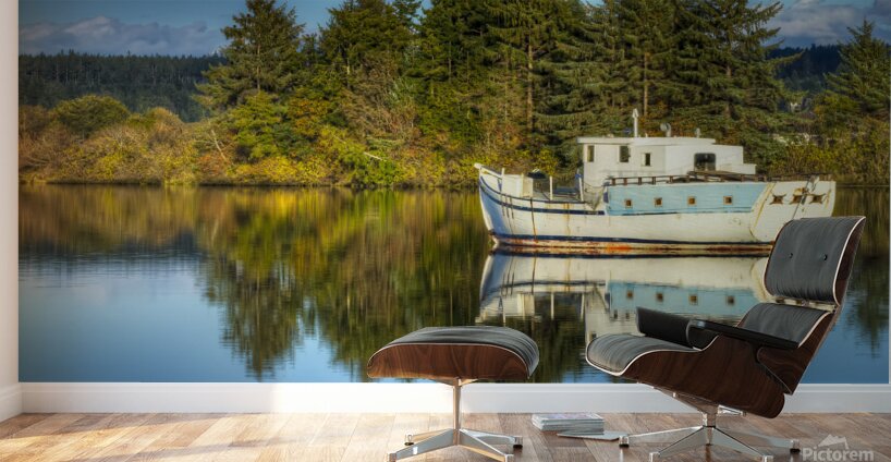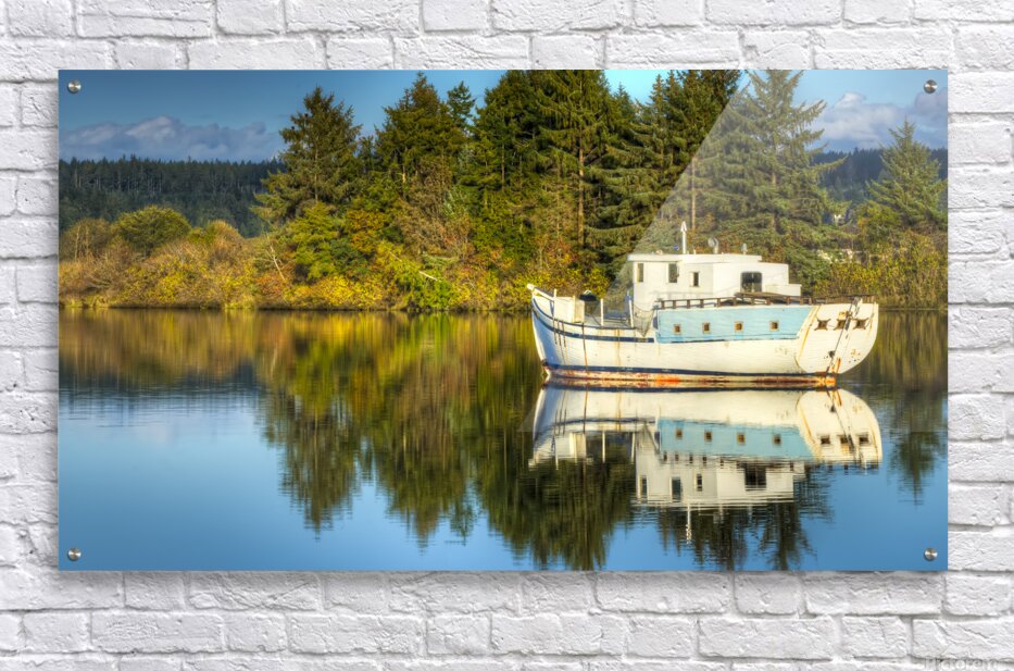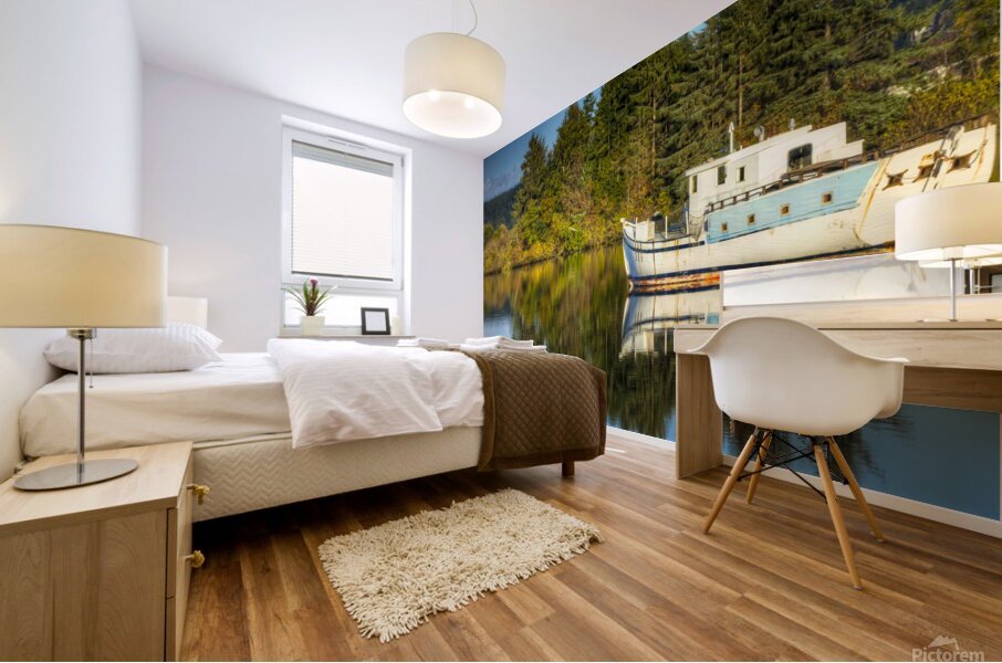 In the stillness of a secluded lagoon, an aging boat languishes, bearing witness to forgotten stories and forgotten dreams. The glassy surface of the water reflects the vessel's weathered facade, hinting at its former glory. This evocative image serves as a poignant reminder of the transient nature of life, leaving viewers to ponder the echoes of the past in the present