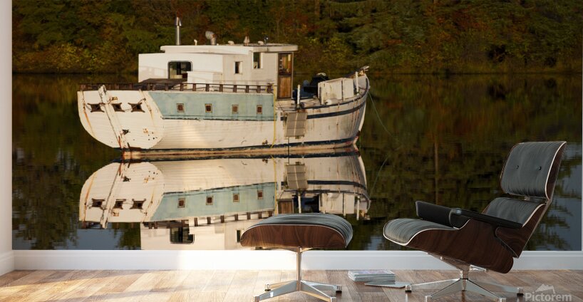 Amidst the quiet whispers of time, a weathered boat stands as a stoic testament to the ebb and flow of life. Its once-vibrant hull, now weathered and worn, carries the stories of countless journeys across its weary planks. Mirrored in the tranquil waters beneath, the boat's reflection adds a poignant layer to the narrative, as if the ripples themselves are echoes of the vessel's storied past. The play of decay and reflection creates a hauntingly beautiful tableau, where the passage of time becomes a silent artist, etching a captivating tale on the canvas of forgotten shores.