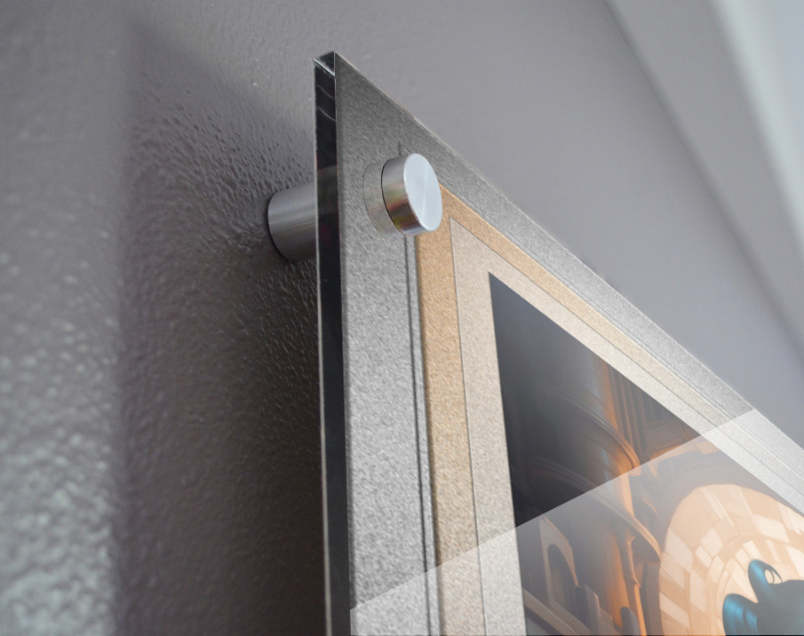 Printed to the edge - Ready to hang - provided with 4 premium polished aluminum stand off ( wall screws and mounting hardware provided )