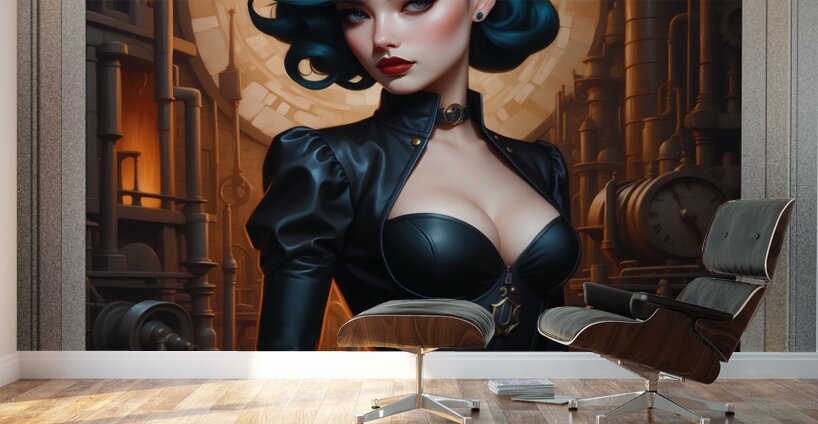 I am In Control Gothic Girl Portrit AI Concept Art by Xzendor7; now the proud owner of her grandfathers factory where the magical elixirs of the ancie...[+]