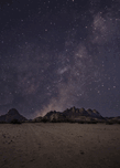Head out on a celestial journey with our captivating photo, "Starry Spitzkoppe Peaks." As the Milky Way gracefully drapes the rugged silhouette of the...[+]